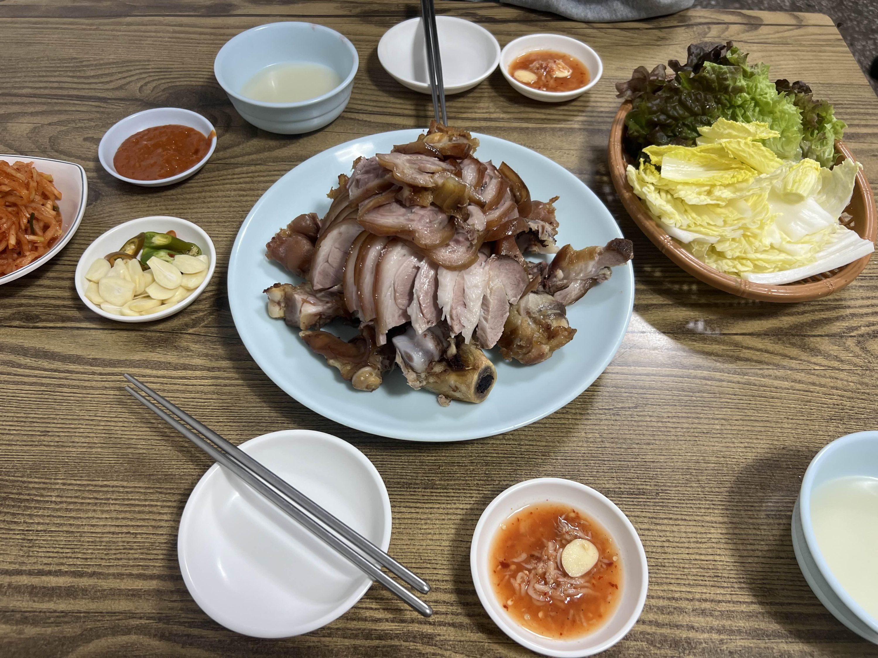 구정의 폭식에도 우리는 굴하지 않았다. 이게 먹다보니 계속 먹고 싶어진 것 같다. 원래 고기도 먹어본 사람이 많이 먹는다고 했다. 눈치를 봤지만 와이프가 먼저 이야기를 꺼내서 자연스럽게 편승했다. 그래도 다이어트는 해야하니깐 탄수화물이 적은 것이 무엇일까 하다가 고른 것이 족발이었다. 게다가 짜지 않은 것을 찾다보니 "마산 족발"이 떠올랐다.