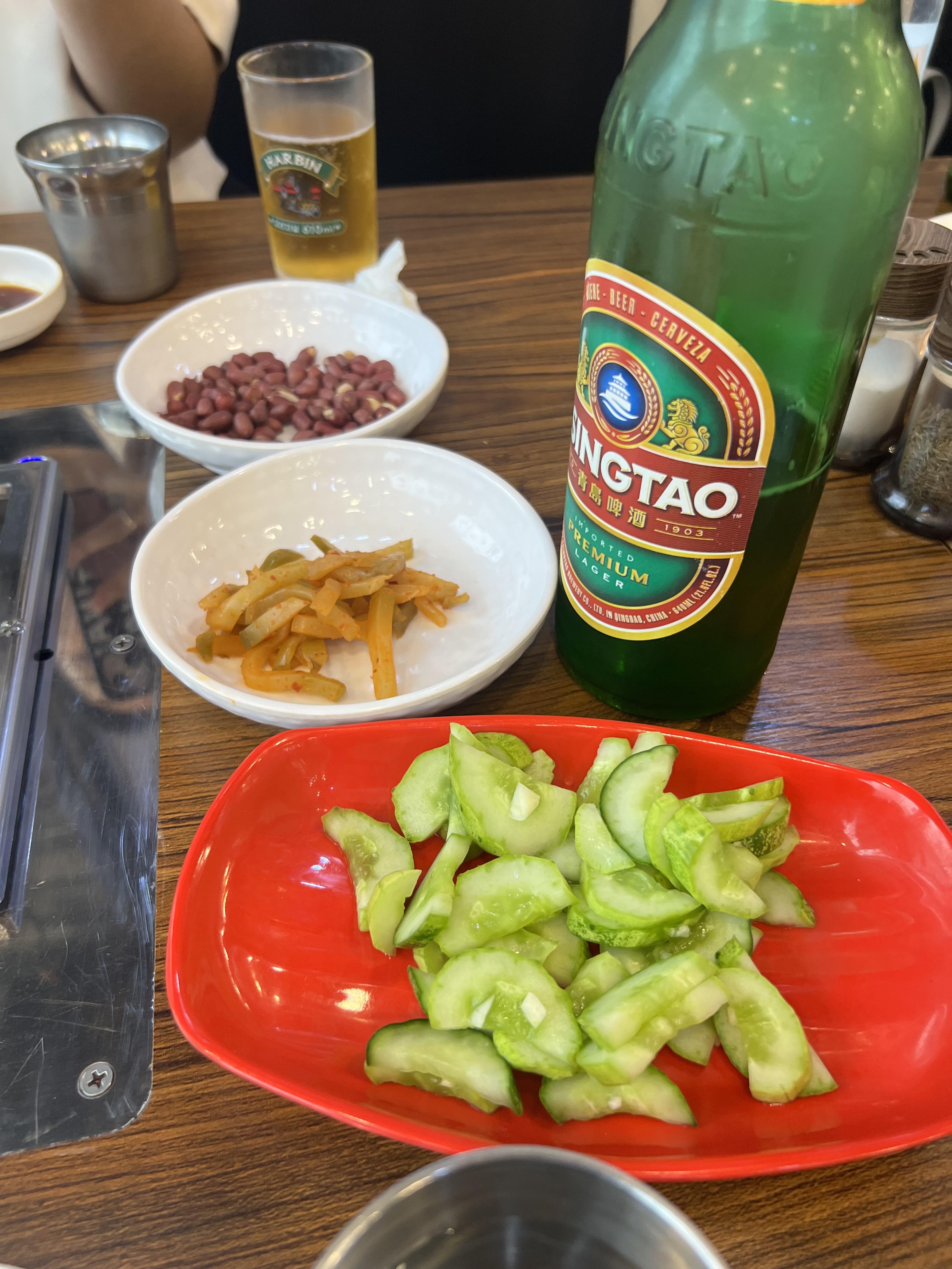 칭따오 2개를 시키면 비빔국수를 준다고 했는데, 1개를 마시고 있는데 주셨다.