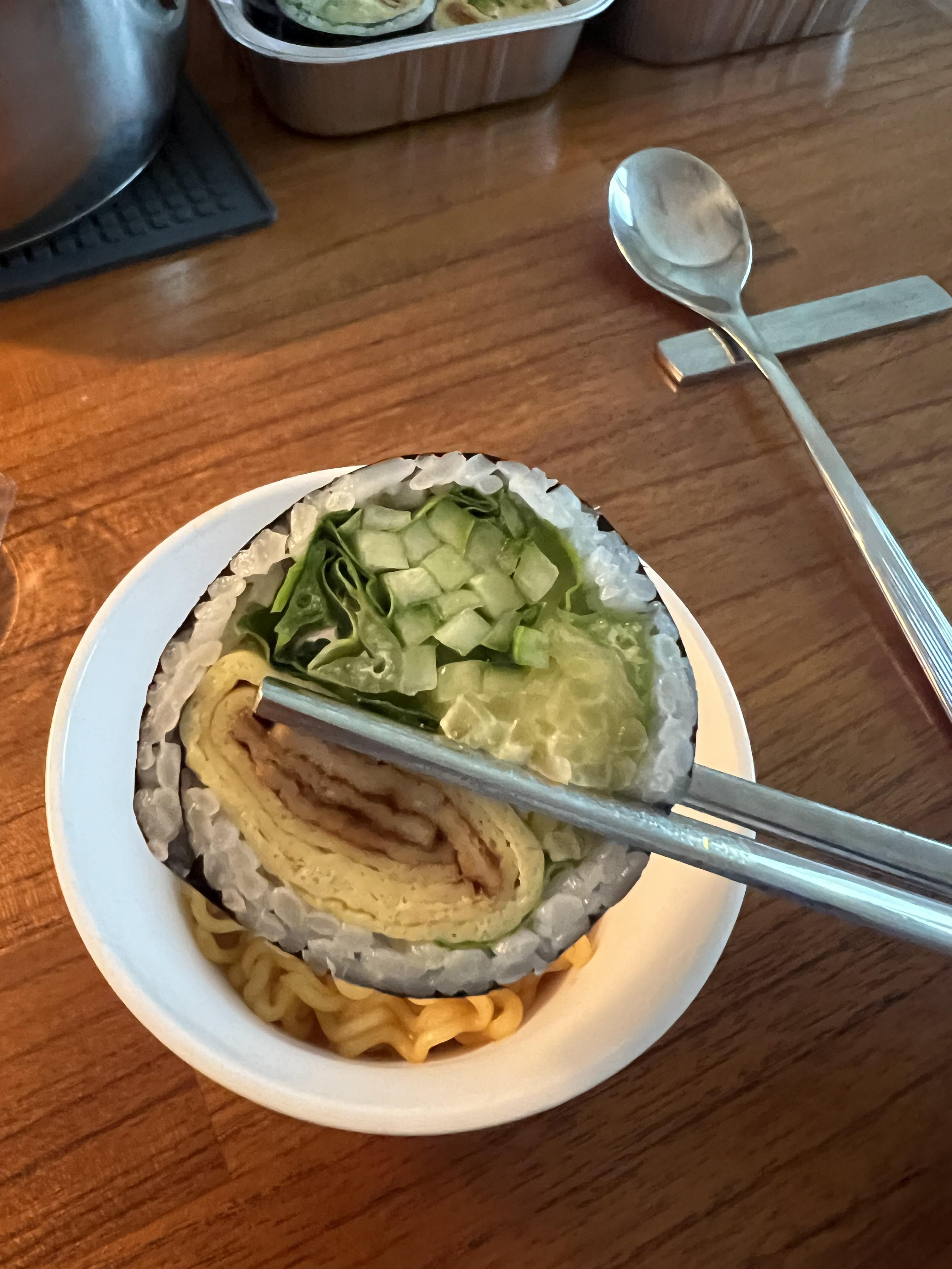 그러던 어느 주말 점심, 라면에 김밥이 먹고 싶었다.
