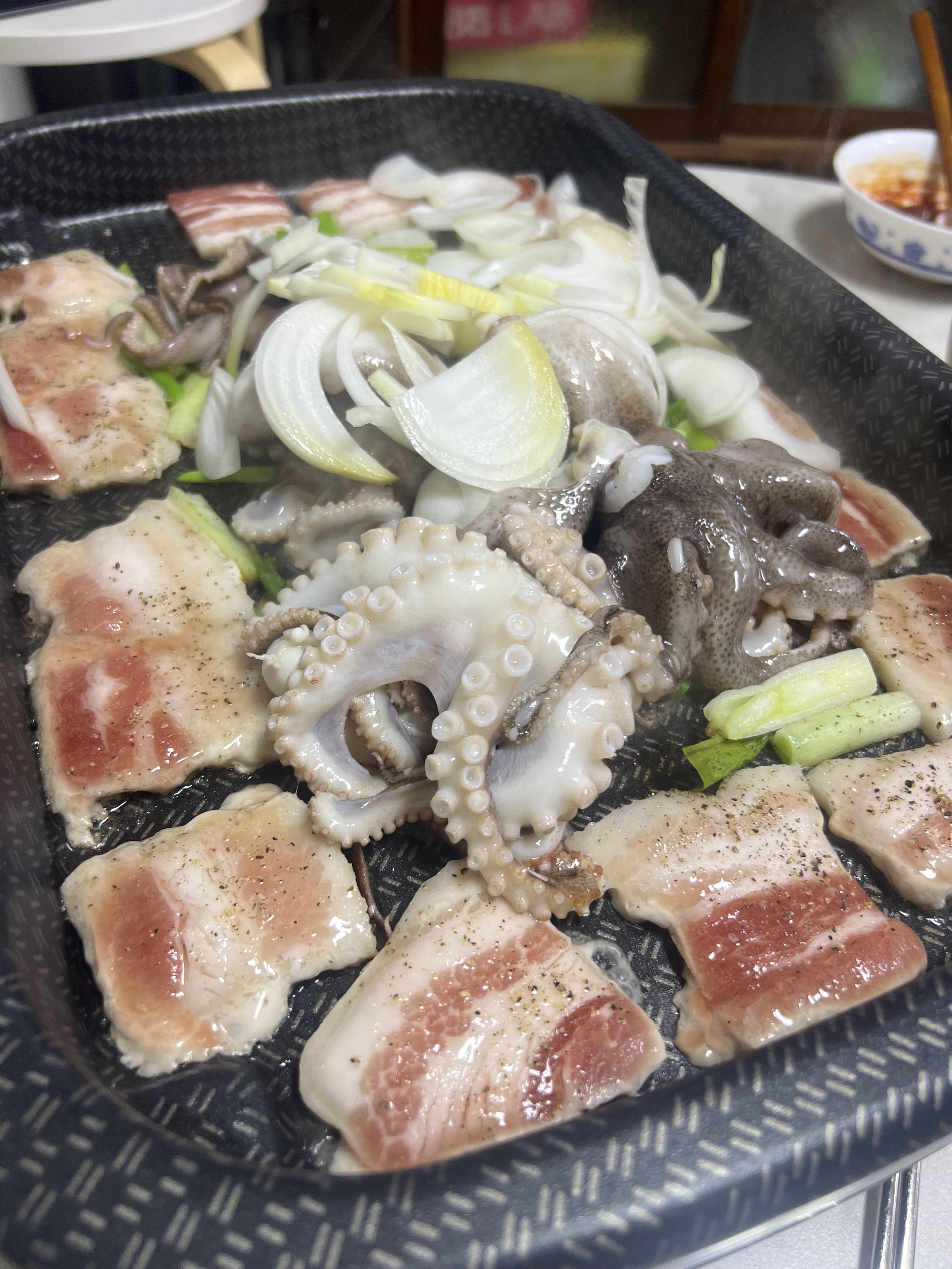 - 쭈꾸미 삽겹살 파 양파 마늘 깻잎 파 고추장 고추가루등... 양념일체