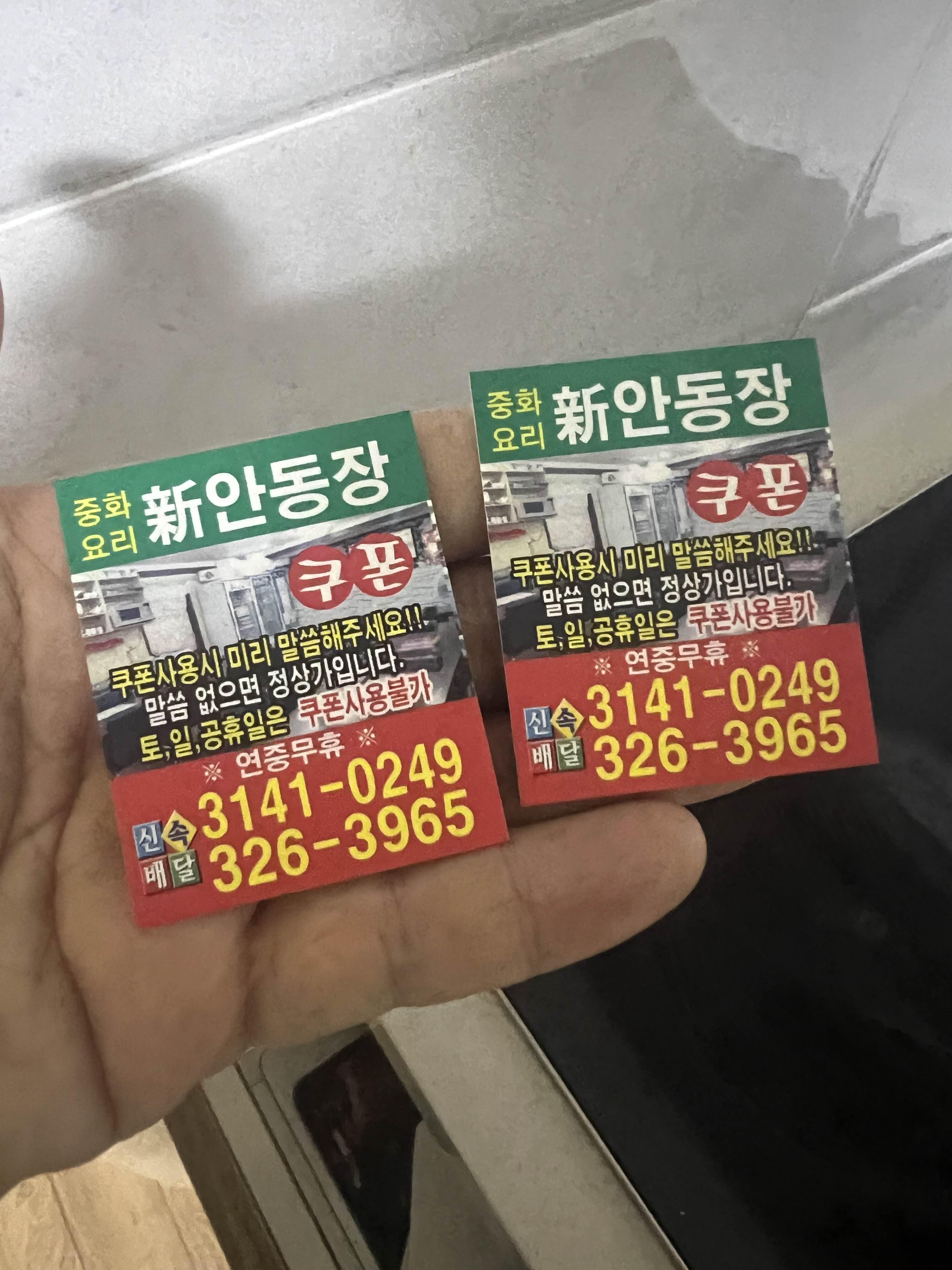 어디서 시킬까? 하다가 와이프가 현관에 붙어있었던 중국집 광고를 집에 둔 것을 기억했었다.