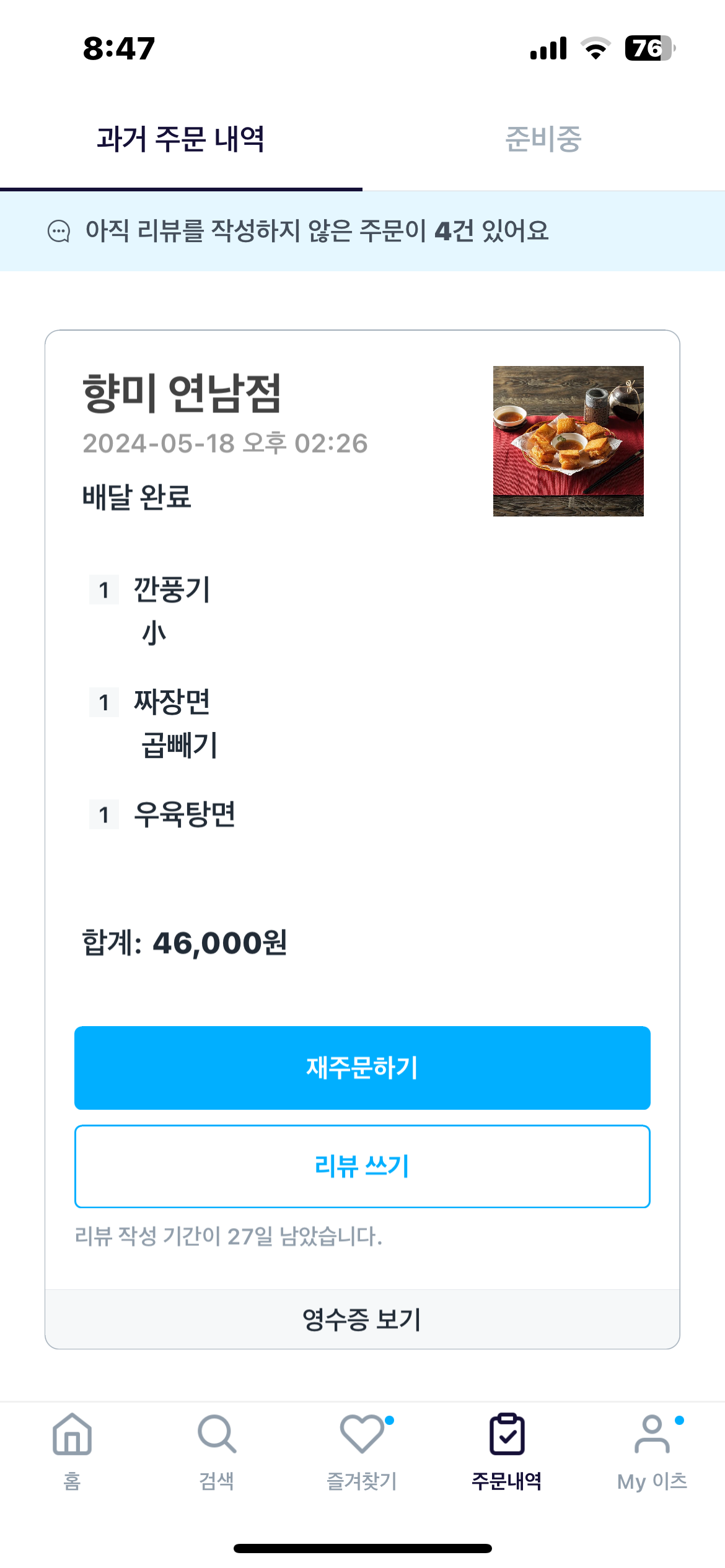 배달 시키고 시간이 엄청 지나고 나서 알게 되어 짜증났던 것 같다.