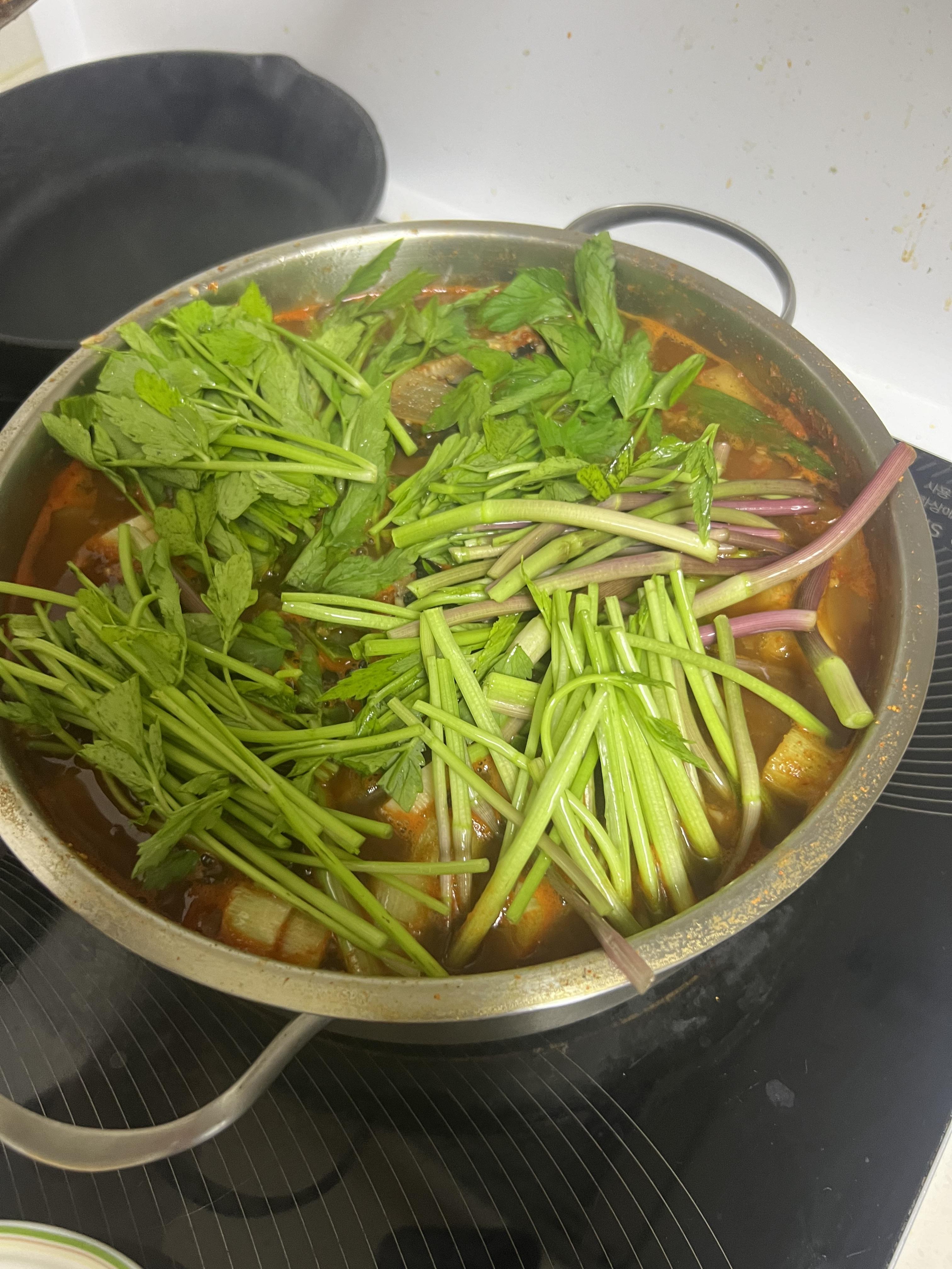 미나리도 대충 썰어서...