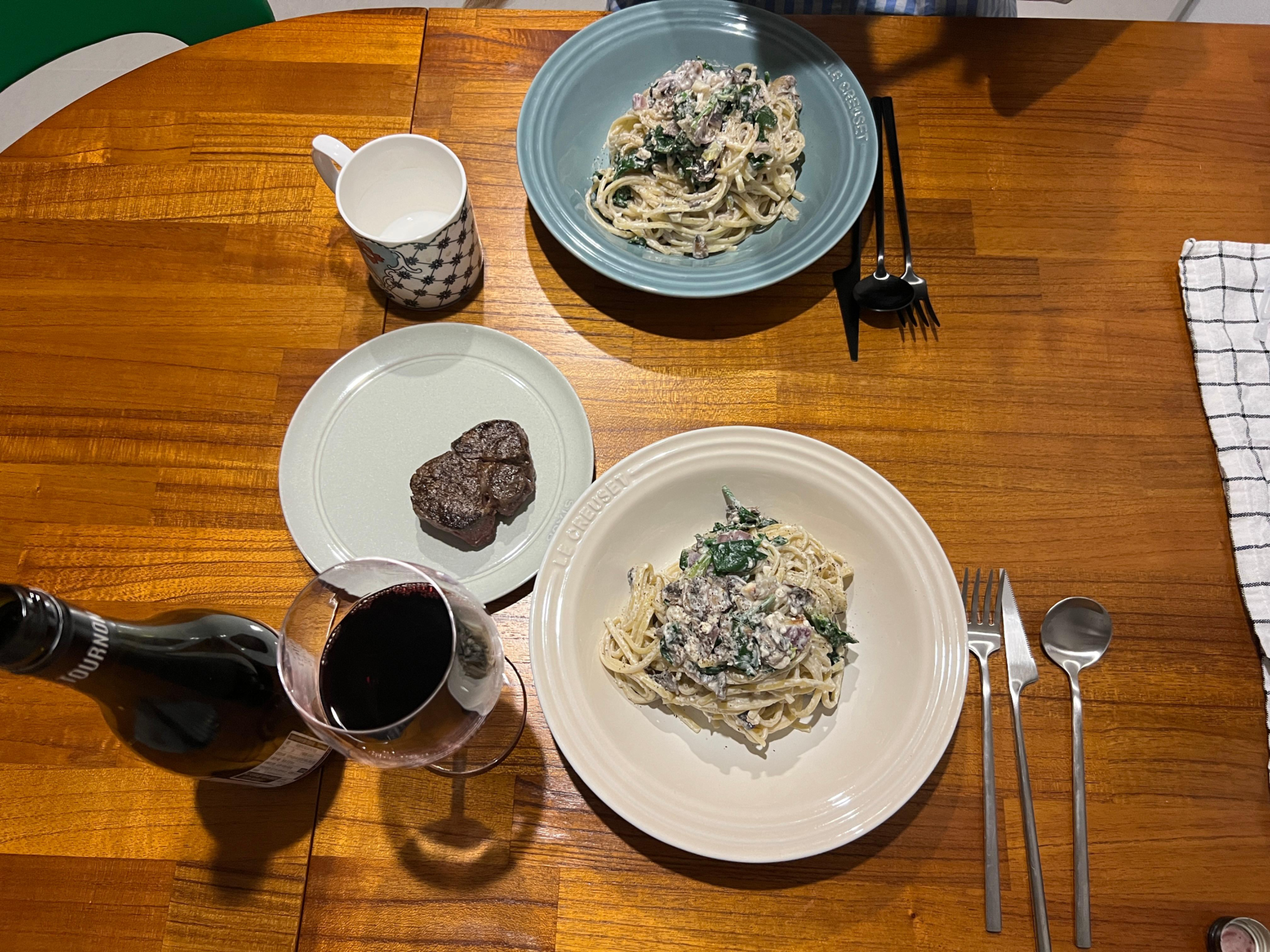 생각해보면 와인 고기 다합쳐서 재료비 한 7만원 나왔을 것 같은데, 만족합니다.