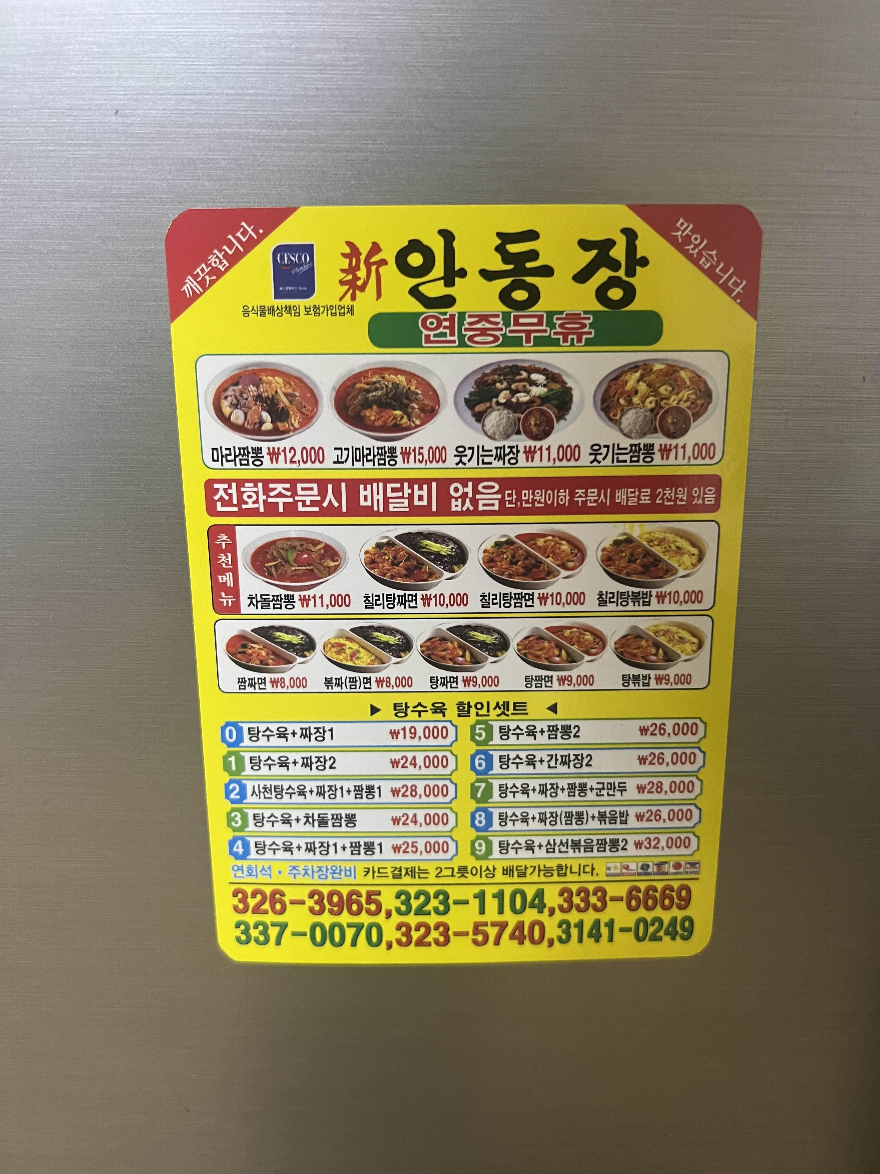 어디서 시킬까? 하다가 와이프가 현관에 붙어있었던 중국집 광고를 집에 둔 것을 기억했었다.
